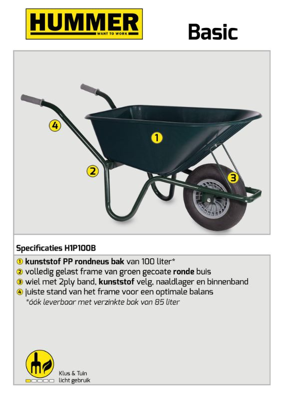 Klus/tuinkruiwagen Basic gecoat frame 100 L